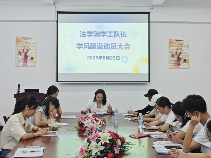 为深入贯彻落实立德树人根本任务,进一步加强学风建设,全面提升教育教学质量,8月29日,pg娱乐电子游戏官网入口于pg娱乐电子游戏官网入口普照楼法律诊所召开学工队伍学风建设动员大会。pg娱乐电子游戏官网入口党总支书记兼副院长杨勤、pg娱乐电子游戏官网入口党总支副书记林媛,以及全体班主任、辅导员、学务秘书齐聚一堂,共同擘画学风建设新蓝图。本次会议由pg娱乐电子游戏官网入口党总支书记兼副院长杨勤主持。