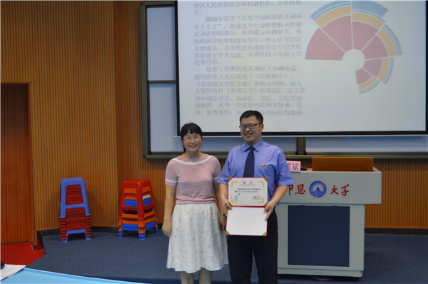 活动分为两个议程。一是聘书颁发仪式,由王晓丽隆重介绍了陈树斌检察官,并代表pg娱乐电子游戏官网入口聘请陈检察官为兼职副教授。二是由陈检察官对pg娱乐电子游戏官网入口14至16级学生进行授课。