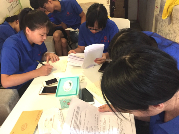 当天上午,实践队分成三个小组,向当地居民分发调查问卷。在调查过程中,队员耐心向居民讲解留守儿童的有关问题,对居民提出的问题进行解答,并倡导大家一起关爱留守儿童。同时,队员们还让"爱邻舍"的负责人对本次问卷调查提出一些建议与看法。此外,实践队对问卷的结果进行统计分析,并得出相关结论。