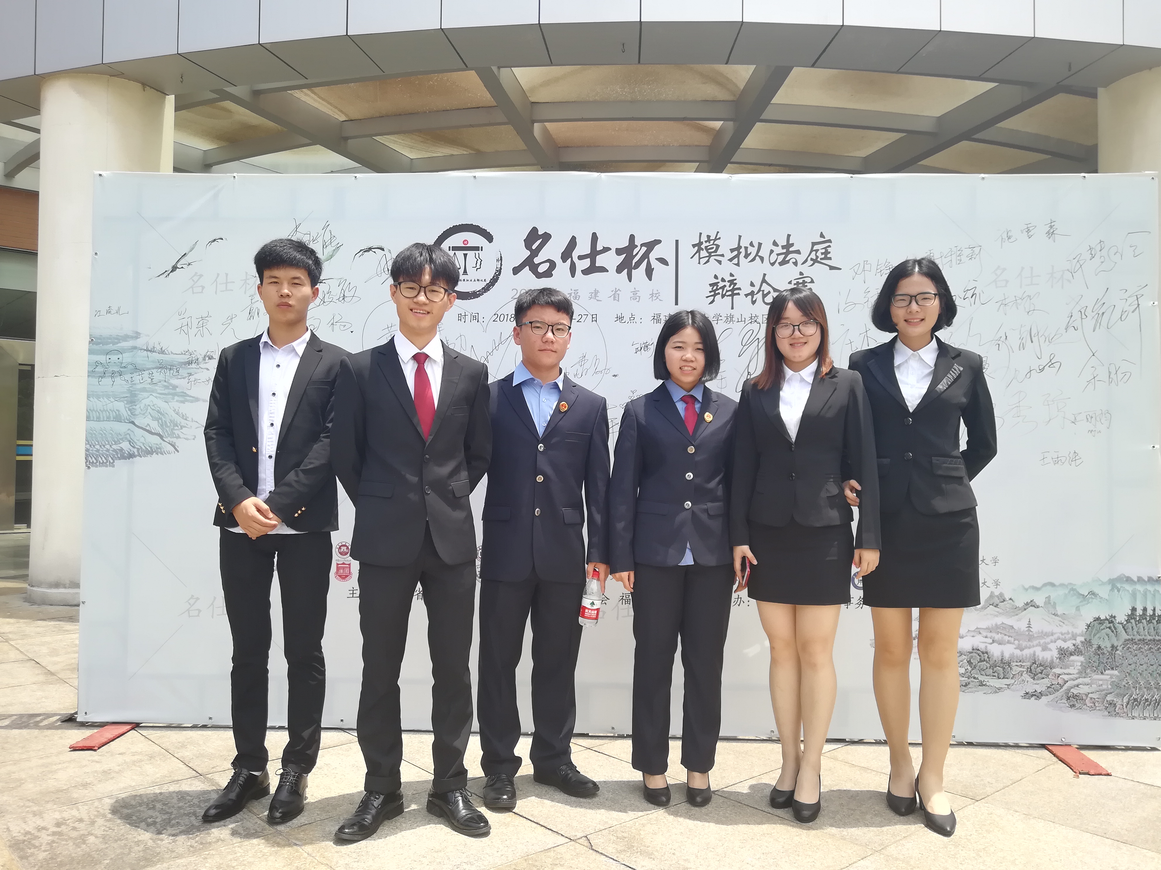 5月26日、27日,pg娱乐电子游戏官网pg娱乐电子游戏官网入口代表队(艾飞燕、王文芳、林振文、林鸿新、吴婷婷、余昌锭)在pg娱乐电子游戏官网入口教师陈琳带领下,前往福建师范大学旗山校区参加第五届“名仕杯”福建省高校模拟法庭辩论赛并获得优秀奖。