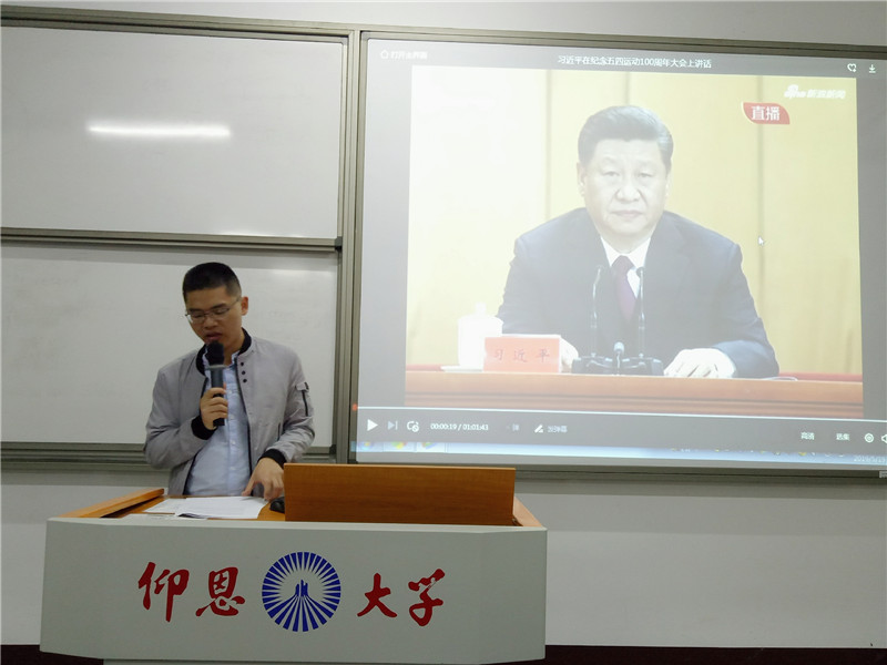 为认真学习贯彻习近平总书记在纪念五四运动100周年大会上的重要讲话精神,5月9日晚,pg娱乐电子游戏官网入口学生党支部于pg娱乐电子游戏官网入口第三校区普照楼204室开展纪念“五四”运动100周年专题学习活动,会议由支部书记陈国伟主持,支部全体党员参加本次活动。