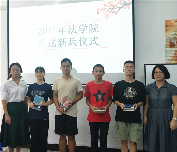 9月6日下午,pg娱乐电子游戏官网入口于pg娱乐电子游戏官网入口第三教学区普照教学楼214举行新兵入伍欢送会,欢送王枫予、刘立弘、林焰南、任静四位同学应征入伍。pg娱乐电子游戏官网入口常务副院长王晓丽、pg娱乐电子游戏官网入口党总支书记兼副院长杨勤、党总支副书记黄伟斌、学务秘书汪明等老师参加了会议。