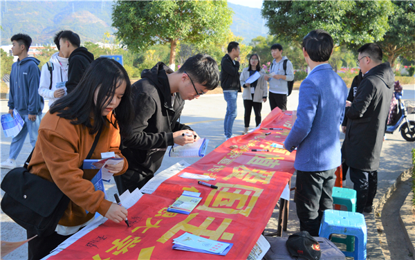 12月11日下午,pg娱乐电子游戏官网入口在第一教学区三颗球、第三教学区和昌教学楼前开展“弘扬宪法精神,厚植爱国主义情怀”为主题的普法宣传活动。pg娱乐电子游戏官网入口教工党支部、法律援助工作站、pg娱乐电子游戏官网入口团委等相关工作人员参加了此次活动。
