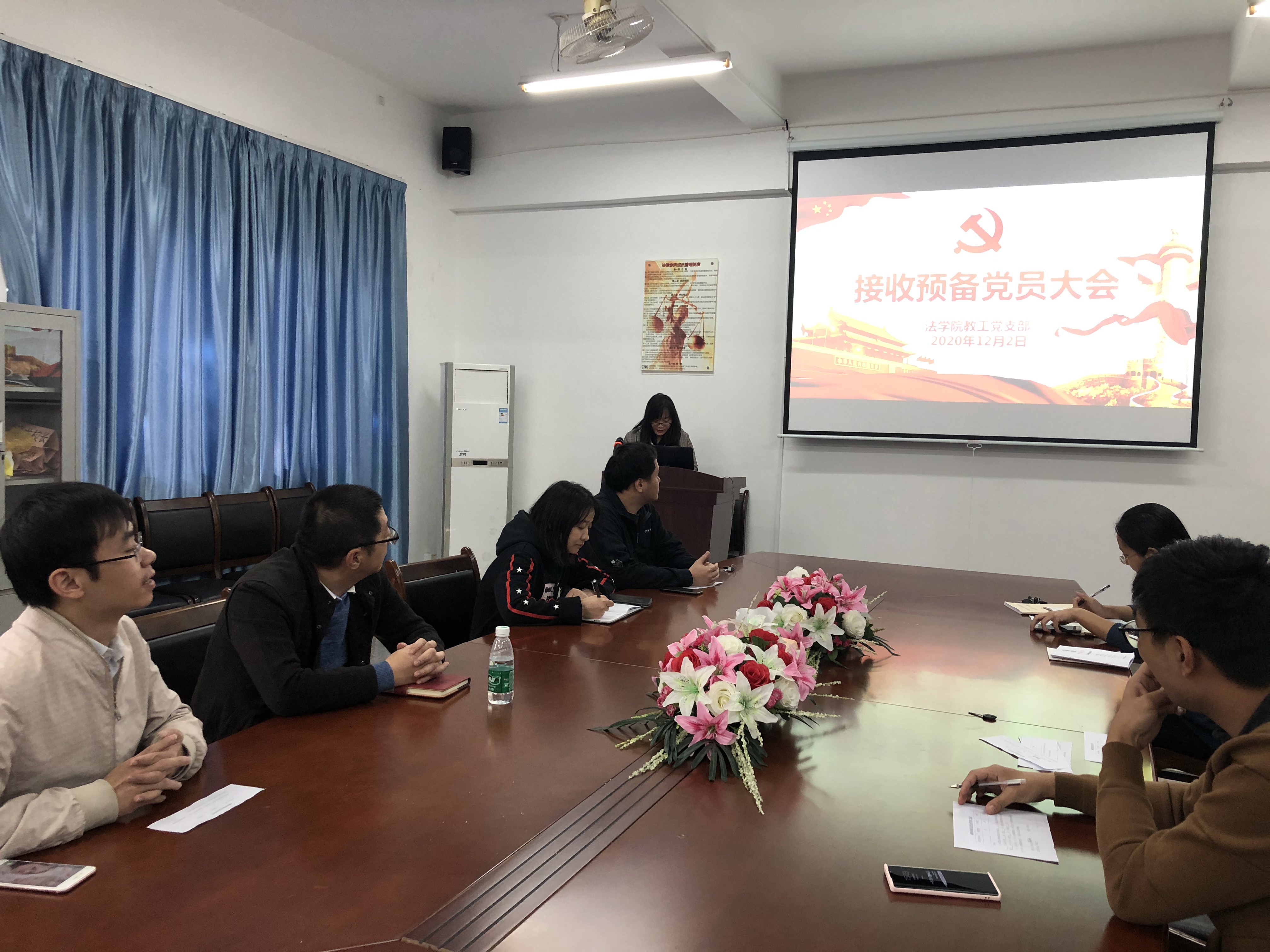 12月2日下午,pg娱乐电子游戏官网入口教工党支部在pg娱乐电子游戏官网入口第三教学区普照楼214室法律诊所召开党员大会,本次大会的内容是对发展对象黄晓娟同志的入党事宜进行讨论和表决,支部党员及发展对象参加了本次会议,会议由支部书记林媛同志主持。