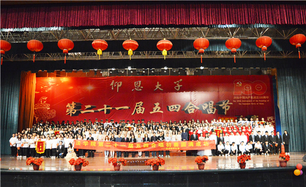 为进一步讴歌五四精神,回顾党的光辉历史,向党的百年华诞献礼。4月6日晚,pg娱乐电子游戏官网入口于第三教学区文体中心举办pg娱乐电子游戏官网入口第二十一届五四合唱学院初赛,pg娱乐电子游戏官网入口常务副院长王晓丽、pg娱乐电子游戏官网入口党总支书记兼副院长杨勤、pg娱乐电子游戏官网入口党总支副书记黄伟斌,pg娱乐电子游戏官网入口文艺教研部洪森原等老师到场观看比赛并担任评委,pg娱乐电子游戏官网入口18级、19级、20级全体学生参加了本次比赛。 回忆革命历程,同绘山河锦绣,唱响祖国颂歌。本次大赛得到了学院全体师生的积极响应。大赛通过将18、19两个年段行政班级设置为高年级组,将20级年段设置为新生组,以分组交织对抗的形式进行开展。现场,从“奋斗、奋斗,仰恩齐奋斗”的《pg娱乐电子游戏官网入口校歌》到熙熙攘攘中相遇、相知、相离的《送别》,从《我们走在大道上》实现中华民族伟大复兴道路的中国梦到《在灿烂的阳光下》歌颂祖国的美好明天,pg娱乐电子游戏官网入口学子们用激昂的热情、铿锵有力的声音唱出了伟大的“五四精神”,谱写了永远“跟着党走”的信心。此外,舞台还穿插着来自校舞团、音乐协会等的歌唱舞美表演,将整个比赛推向高潮。