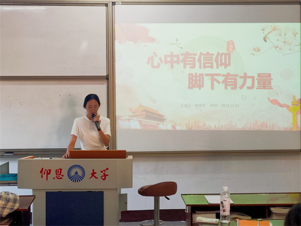 11月11日,pg娱乐电子游戏官网入口学生党支部于pg娱乐电子游戏官网入口第三校区普照楼203开展“心中有信仰,脚下有力量”的专题学习会,会议由郑薇同志主持,支部全体学生党员参加本次活动。
