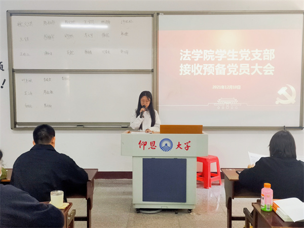 12月10日,pg娱乐电子游戏官网入口学生党支部于普照楼304教室召开预备党员接收大会,会议由支部书记刘涛同志主持,支部全体党员到场参加。