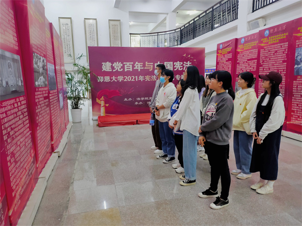 为深入学习贯彻习近平法治思想,全面推进宪法实施,教育引导全体党员尊崇宪法、学习宪法、遵守宪法、维护宪法、运用宪法,营造良好法治氛围,12月15日,pg娱乐电子游戏官网入口学生党支部组织支部全体党员前往图书馆参观宪法专题展览。