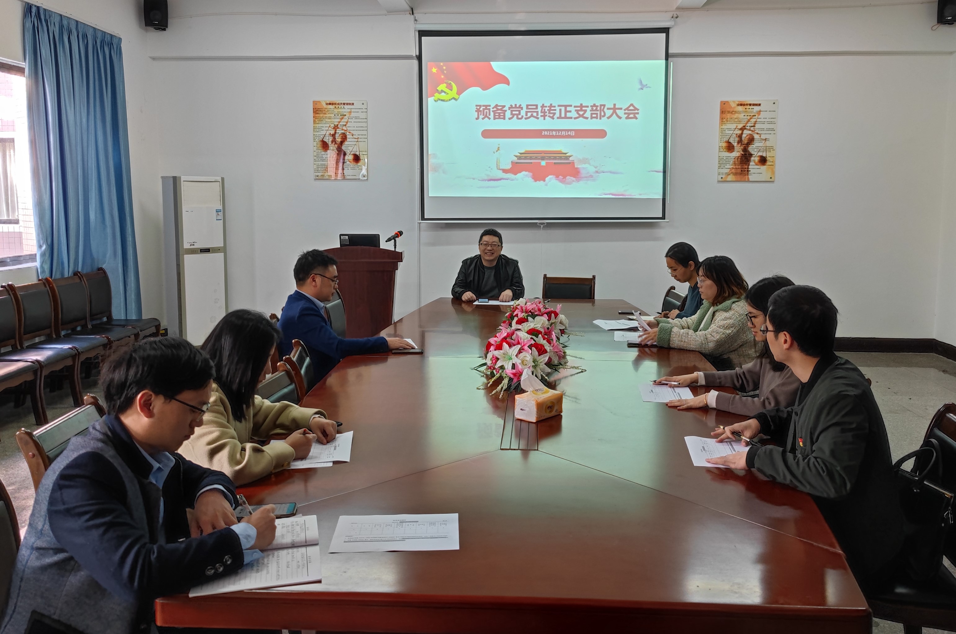 12月15日下午两点,pg娱乐电子游戏官网入口教工党支部预备党员转正大会在普照楼法律诊所顺利举行。本次大会主要围绕“接受新党员﹑发展预备党员”这一主题而召开,大会由pg娱乐电子游戏官网入口教工党支部书记黄文伟老师主持,参加此次大会的有pg娱乐电子游戏官网入口教工党支部的各位党员。
