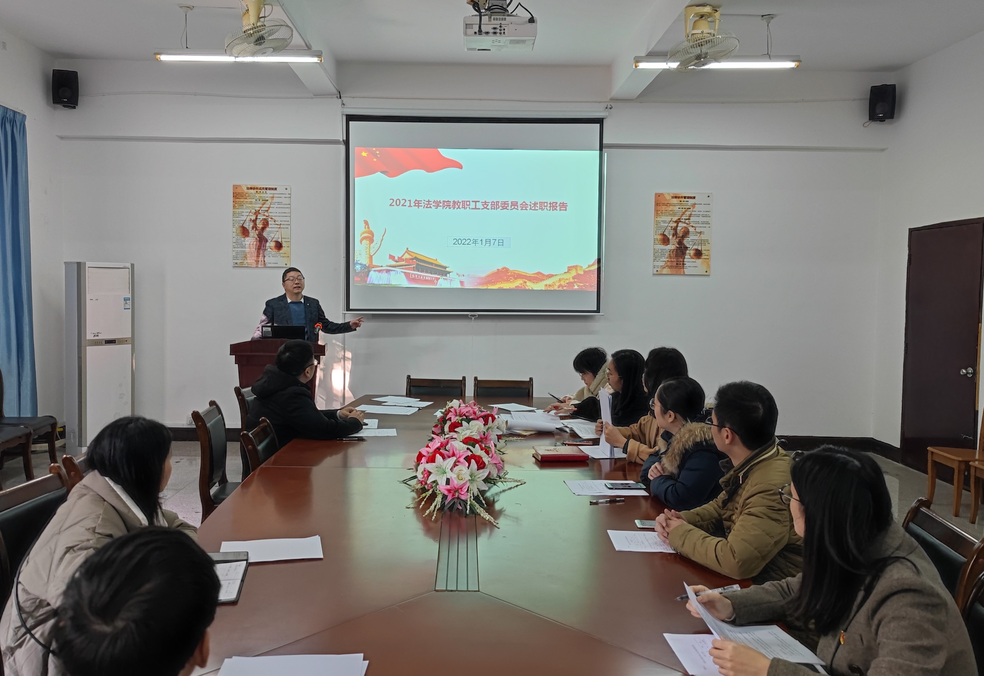 1月7日下午,pg娱乐电子游戏官网入口党总支于pg娱乐电子游戏官网入口第三校区普照教学楼法律诊所召开2021年度基层党支部述职会议,pg娱乐电子游戏官网入口全体教师党员参加了此次活动,会议由pg娱乐电子游戏官网入口党总支书记兼副院长杨勤主持。