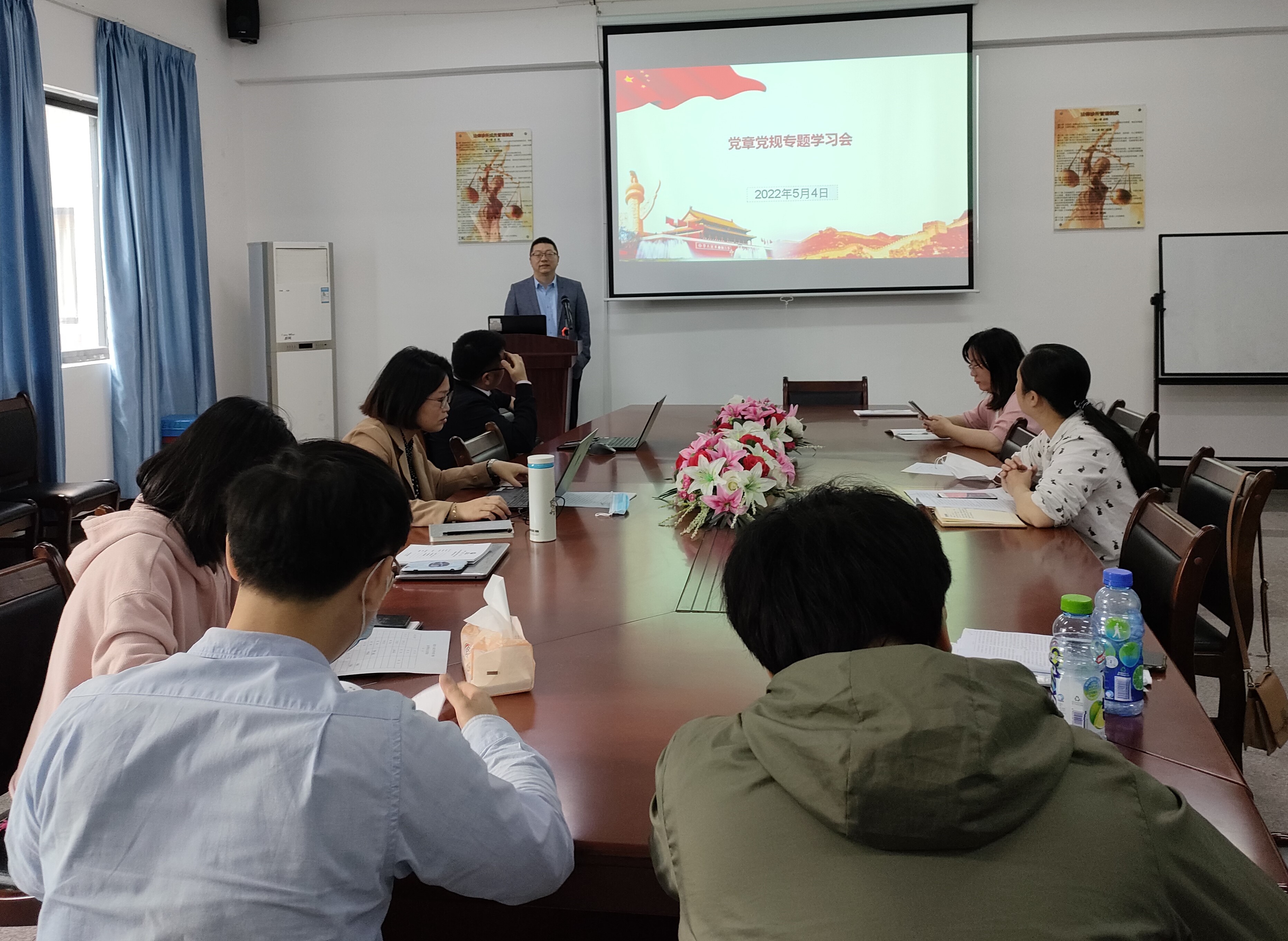 5月4日下午,pg娱乐电子游戏官网入口教工党支部开展党章党规专题的学习活动,教工党支部书记黄文伟老师主持会议并讲话,教工党支部成员参加会议。