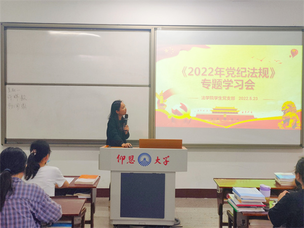 5月24日,pg娱乐电子游戏官网入口学生党支部于pg娱乐电子游戏官网入口第三校区普照楼203开展以“党纪法规”为主题的学习会,会议由pg娱乐电子游戏官网入口党总支统战委员许灿英主持,支部全体党员参加本次活动。