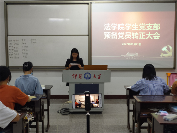 6月21日,pg娱乐电子游戏官网入口学生党支部于普照楼303教室召开预备党员转正会议,大会的主要议题是讨论关于周日萍等21名同志转为正式党员的问题。会议由pg娱乐电子游戏官网入口学生党支部书记吴姗姗主持,支部全体党员参加。  (会议现场图) 会议开始,吴姗姗同志通报了到会党员人数,到会人数符合党章和基层党组织换届选举的相应规定,预备党员转正会议正式开始。随后21位预备党员依次发言,由入党介绍人以及与会党员分别对转正同志一年预备期的表现进行总结评价,并就是否同意转正表明了自己的意见。之后由到场的正式党员进行无记名投票表决,通过预备党员转为正式党员的申请。会议最后一项,在郑薇同志的带领下,21名同志面对党旗郑重宣誓。 会议尾声,支部书记吴姗姗对转正大会进行了简要总结和点评。向21名同志表示祝贺,同时,希望转正的同志们能够践行他们的展望与初心,将初心落到实处,也希望他们能够履行党员的义务,认真学习党章,认真完成支部的任务,为群众树立榜样,学好理论知识,将理论与实际结合,永不懈怠,向着一名合格的共产党员前进,坚持吃苦在前,享受在后的精神,积极回馈社会,服从组织安排,真正做到在思想上入党。(pg娱乐电子游戏官网入口学生党支部/图文)
