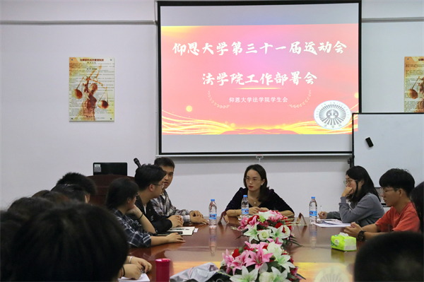 为进一步落实运动会相关事项,确保第三十一届运动会的各项工作顺利展开,11月14日下午,pg娱乐电子游戏官网入口于pg娱乐电子游戏官网入口第三教学区普照教学楼法律诊所开展第三十一届运动会动员大会,pg娱乐电子游戏官网入口党总支书记兼副院长杨勤、pg娱乐电子游戏官网入口辅导员林智富、吴姗姗出席本次会议,学院团学干部和运动员代表参加本次会议。