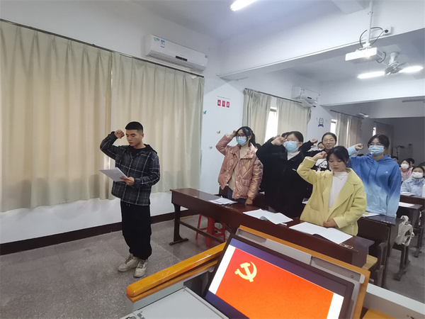 大会严格按照发展党员工作程序,由发展对象依次向党组织汇报对党的认识、入党动机等方面的情况。十位发展对象依次发言后,由入党介绍人及与会党员分别向大会报告发展对象有关情况,并对其能否入党表明了意见。经过与会党员的充分讨论和无记名投票表决,与会党员一致认为,曾锦宝等十名发展对象已基本具备党员条件,同意接收曾锦宝等十名同志为中共预备党员。会议最后一项,在吴章祥同志的带领下,十名同志面对党旗郑重宣誓。