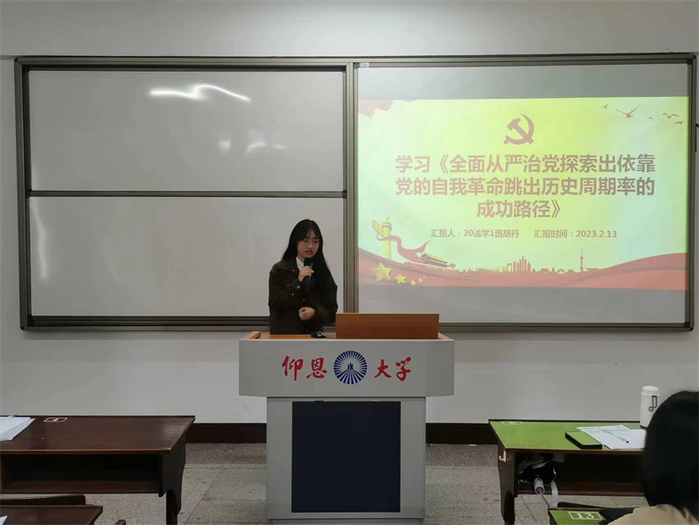 2月13日,pg娱乐电子游戏官网入口学生党支部于普照203教室,开展以学习《全面从严治党探索出依靠党的自我革命跳出历史周期率的成功路径》的专题学习会,会议由吴姗姗老师主持,支部全体学生党员参加此次活动。