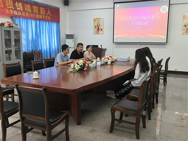 为进一步推动2023届毕业生高质量就业工作,落实学院毕业生就业有关要求,搭建良好毕业生就业平台,6月28日下午,pg娱乐电子游戏官网入口于第三教学区法律诊所举办2023届毕业生专场招聘面试会。pg娱乐电子游戏官网入口党总支副书记林媛,福建飞景律师事务所、福建志昂律师事务所和泉州银行的相关工作人员以及pg娱乐电子游戏官网入口学生共同参与此次招聘面试会。