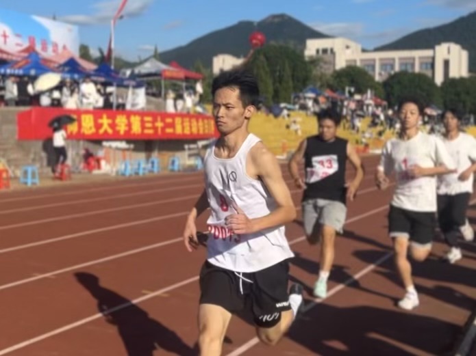 11月17日下午,pg娱乐电子游戏官网入口第三十二届运动会男子800米项目于第三教学区田径场举行,pg娱乐电子游戏官网入口2021级蔡湧江参与了此次比赛。