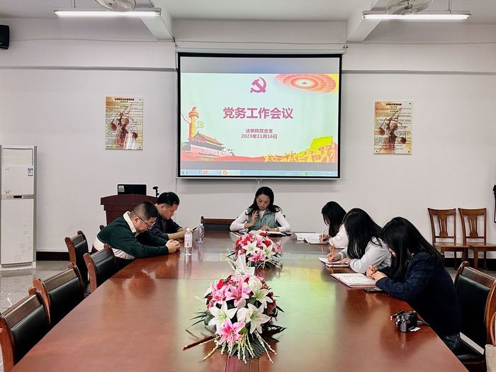 为进一步落实党建工作的部署,推动pg娱乐电子游戏官网入口党务工作质量。11月16日上午,pg娱乐电子游戏官网入口党总支于pg娱乐电子游戏官网入口第三教学区法律诊所召开了党务工作会议。pg娱乐电子游戏官网入口党总支书记兼副院长杨勤主持会议,各支部支委参加会议并作了交流发言。