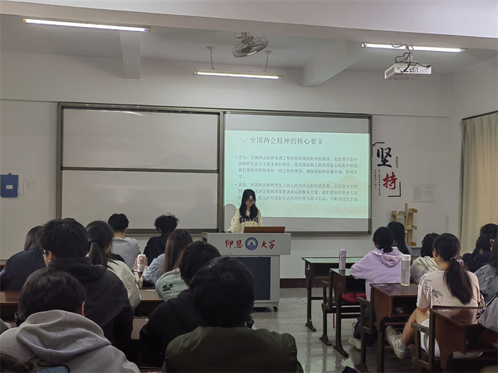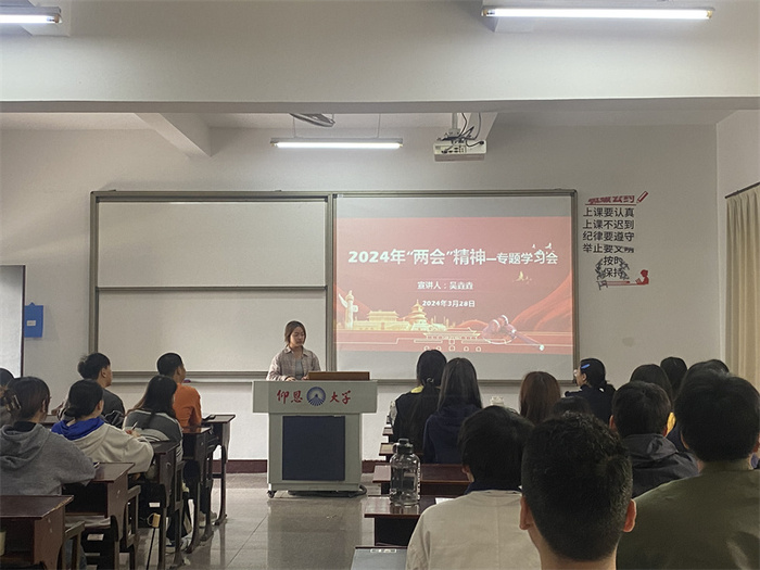在以习近平同志为核心的党中央坚强领导下,全党全国各族人民振奋精神、鼓足干劲,为以中国式现代化全面推进强国建设、民族复兴伟业不懈奋斗。2024年3月28日,pg娱乐电子游戏官网入口学生党支部开展“学习‘两会’精神,政治理论走进班”活动,全院同学参加。