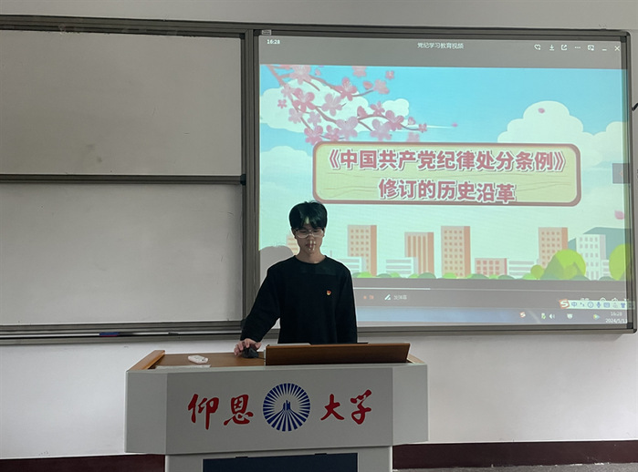 5月13日,pg娱乐电子游戏官网入口学生党支部于普照楼203组织观看党风党纪警示教育片。本次党日活动旨在引导支部学生党员以案为鉴、警钟长鸣,严守党的纪律,自觉做到清正廉洁。本次党日活动由吴姗姗主持,支部全体学生党员参加。