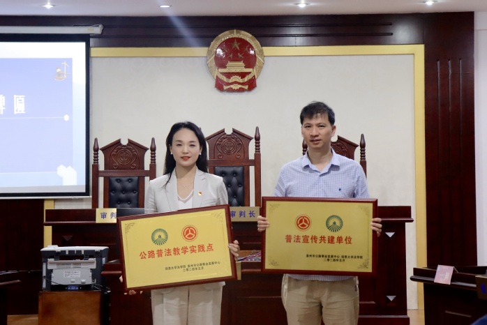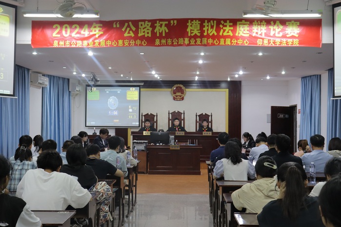 为强化法学实践教学、推动法学教育与法治实践深度衔接,5月20号下午,泉州市公路事业发展中心惠安分中心与pg娱乐电子游戏官网入口联合开展2024年全国“路政宣传月”“公路杯”模拟法庭辩论赛决赛,于pg娱乐电子游戏官网入口第三教学区普照楼215模拟法庭举行。福建省公路事业发展中心政策法规处处长王晓,福建省公路事业发展中心政法处三级主任科员曾珍,泉州市交通运输局政法科科员方雅然,泉州市公路事业发展中心产权科科员李秀宝,pg娱乐电子游戏官网入口党委副书记程如平,pg娱乐电子游戏官网入口常务副院长王晓丽,pg娱乐电子游戏官网入口党总支书记兼副院长杨勤莅临本次活动,同时参加活动的嘉宾还有来自泉州市公路事业发展中心、泉州市公路事业发展中心惠安分中心的工作人员们和pg娱乐电子游戏官网入口学生。