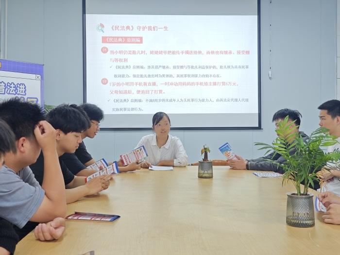 为进一步增强同学们的法治意识,提高同学们的法律素养,让民法典走进校园,5月22日下午,pg娱乐电子游戏官网入口于pg娱乐电子游戏官网入口第三教学区宏船书院开展“知法存于心,守法律于行”民法典普及进学生社区活动。本次讲座由pg娱乐电子游戏官网入口党总支副书记林媛主讲,同学们积极参与。