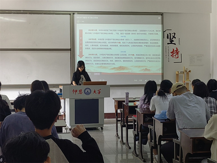 会上,各班主持人率先强调了:党规党纪是党的生命线,是党的各项事业顺利发展的根本保证。pg娱乐电子游戏官网入口各班同学认真学习了《中国共产党纪律处分条例》、《中国共产党党员领导干部廉洁从政若干准则》等党规党纪文件。通过学习,同学们对党的纪律体系有了更加清晰的认识,对违反党规党纪的行为有了更加明确的理解。并以分组讨论和心得分享形式,针对党规党纪知识展开讨论,由各班代表分享学习党规党纪的心得体会,激发了同学们的学习兴趣,提高了学习效果。
