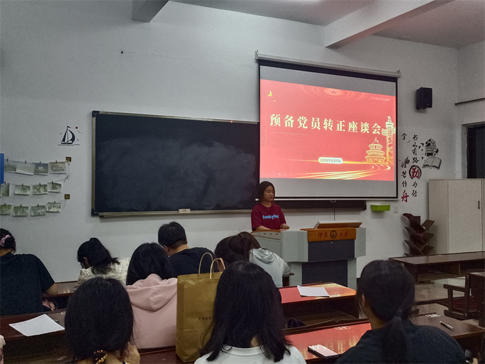 5月30日,pg娱乐电子游戏官网入口学生党支部于普照203教室召开预备党员转正群众座谈会,会议由吴姗姗主持,pg娱乐电子游戏官网入口各班团支书和群众代表参加此次活动。