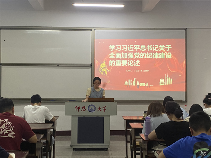 为深入学习贯彻习近平新时代中国特色社会主义思想,推动全面从严治党向纵深发展。6月17日,pg娱乐电子游戏官网入口学生党支部于普照楼203开展“学习习近平总书记关于全面加强党的纪律建设的重要论述”党课,支部全体学生党员参加。