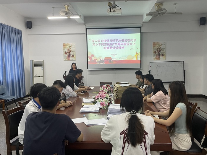 在纪念邓小平同志诞辰120周年之际,pg娱乐电子游戏官网入口组织学生深入学习习近平总书记在纪念邓小平同志诞辰120周年座谈会上的重要讲话精神。学习活动于9月2日下午在法律诊所举行,由团委书记吴姗姗主持,辅导员周奕、辅导员张传奇出席。