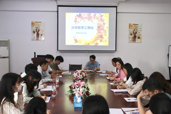 为进一步推动pg娱乐电子游戏官网入口各项工作的顺利开展,10月14日下午,pg娱乐电子游戏官网入口于pg娱乐电子游戏官网入口第三教学区法律诊所召开法学院学生工作例会。本次会议由pg娱乐电子游戏官网入口党支书记兼副院长杨勤主持,pg娱乐电子游戏官网入口全体班主任、辅导员共同出席会议。
