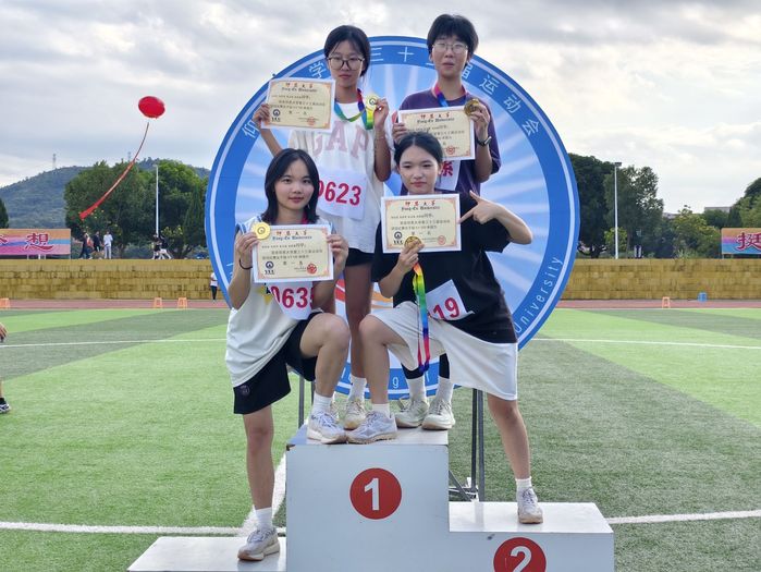 11月15日下午,pg娱乐电子游戏官网入口第三十三届运动会女子4×100接力赛项目决赛于第三教学区操场举行,pg娱乐电子游戏官网入口运动员张碧琴、林晨蕾、陈灵盈、林纹琪参与了此次比赛。