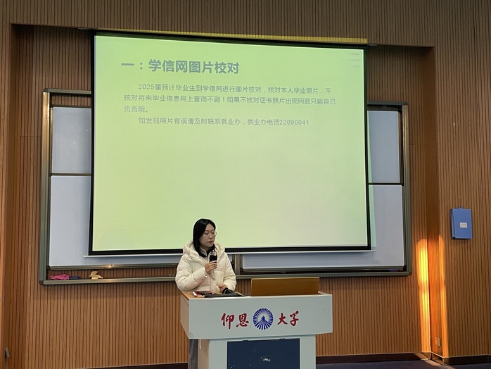 大学毕业之际,择业就业是每一位同学必然要面临的关键抉择。因此,为助力毕业生们更好地与社会就业实现接轨,本次大会详细地介绍了近期的诸多注意要点,并从学信网图片校对、应届毕业生界定问题、就业信息、党团关系转接以及安全教育等五个层面,全方位地指导21级毕业生在面临毕业之际应当如何行动,使其能够为即将踏入社会的征程做好充分准备。大会的尾声阶段,吴姗姗老师依据当下社会状况以及就业形势,为毕业生提供相应的精准解答,鼓励大家努力适应新形势,积极打好主动仗,树立正确的就业观念以及合理的就业期望值,务必珍惜每一次面试机会,同时还要高度警惕黑职介、乱收费等陷阱,努力维护自己的合法权益。