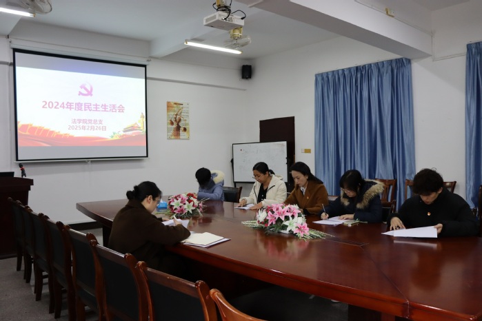 为了深入开展学习习近平新时代中国特色社会主义主思想主题教育,切实加强党的思想建设,2月26日下午,pg娱乐电子游戏官网入口党总支于pg娱乐电子游戏官网入口新区普照楼法律诊所召开了2024年度民主生活会,pg娱乐电子游戏官网入口校党委委员鲍莹玉到会指导,pg娱乐电子游戏官网入口党总支书记兼副院长杨勤主持会议,学院党总支成员参加会议,pg娱乐电子游戏官网入口常务副院长王晓丽列席会议。