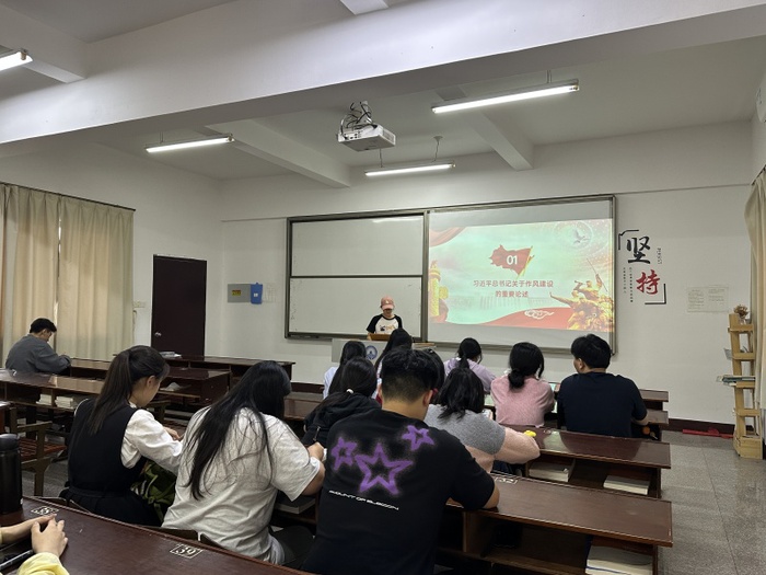 4月27日,pg娱乐电子游戏官网入口学生第一党支部于普照楼203教室开展学习《习近平关于加强党的作风建设论述摘编》活动,支部全体学生党员参加。