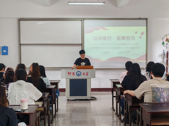 5月9日上午,pg娱乐电子游戏官网入口于pg娱乐电子游戏官网入口第三教学区普照楼304教室举办“以学促行,挺膺担当”主题学习会。本次活动由院团委组织,旨在引导学生干部深化理论学习,强化责任意识,以实际行动践行青春使命。pg娱乐电子游戏官网入口团委副书记阮昕烨担任主讲,pg娱乐电子游戏官网入口网络工作室主任郭晨雨、学生会主席江朝颖作专题发言,各班级代表共80余人参加学习。