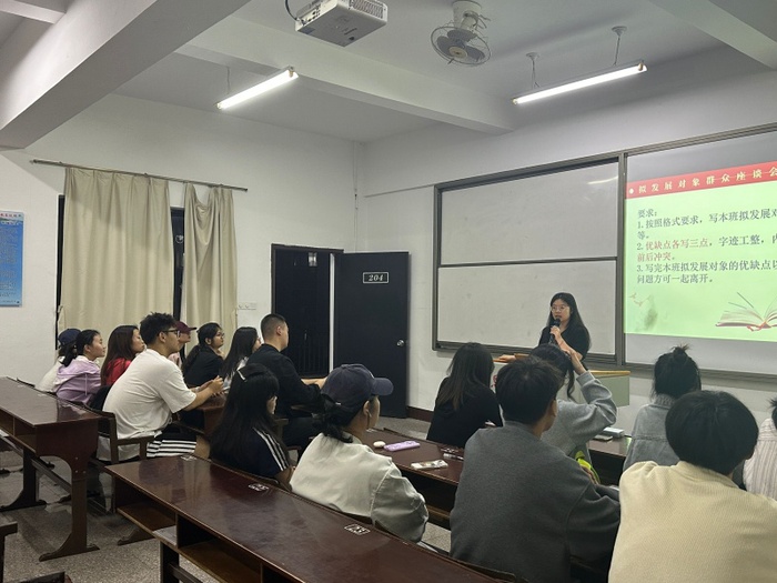 5月29日,pg娱乐电子游戏官网入口学生第一党支部于普照204教室召开预备党员转正群众座谈会,会议由吴姗姗主持,pg娱乐电子游戏官网入口各班团支书和群众代表参加此次活动。