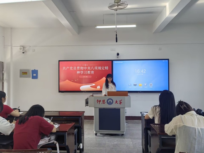 6月9日,pg娱乐电子游戏官网入口学生第一党支部于仰恩楼A1-103教室举行深入贯彻中央八项规定精神学习教育集中讨论会,支部全体学生党员参加。