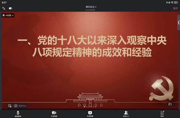 7月16日,pg娱乐电子游戏官网入口学生第一党支部召开线上学习交流会,支部书记吴姗姗围绕“中央八项规定精神”作专题辅导,支部全体学生党员参加。