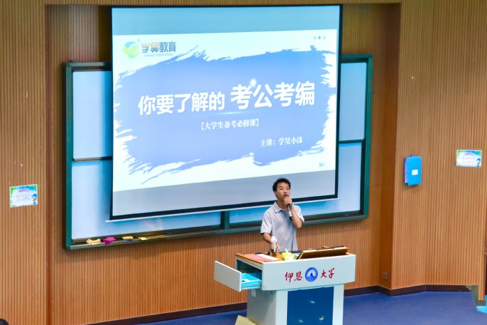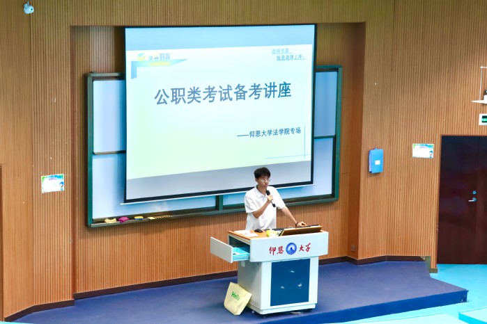 为帮助学生明晰考公考编就业方向,提升职业竞争力,9月22日下午,pg娱乐电子游戏官网入口特邀泉州学昊教育,于新区和昌楼举办考公考编指导讲座,法学院23级全体学生参加本次讲座。