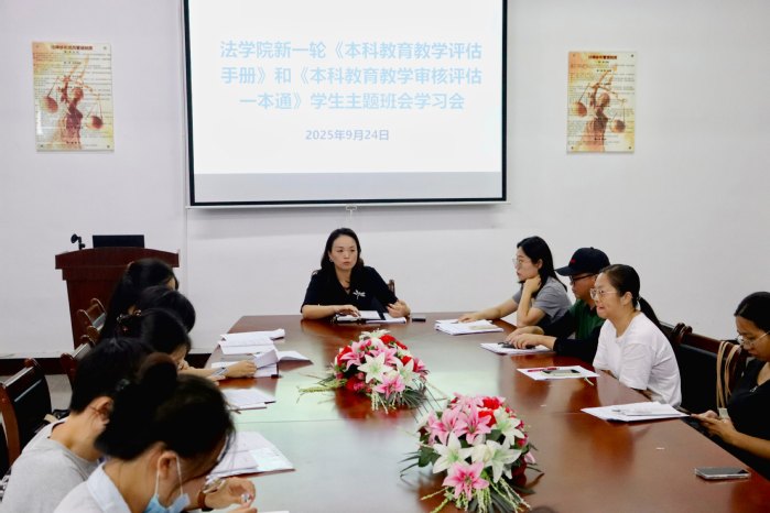 为进一步深化本科教育教学审核评估工作,全面贯彻执行学校审核评估工作的各项要求,9月24日下午,pg娱乐电子游戏官网入口于普照楼法律诊所召开《本科教育教学审核评估知识手册》《本科教育教学审核评估一本通》学工队伍学习部署会。本次会议由pg娱乐电子游戏官网入口党总支书记兼副院长杨勤主持,pg娱乐电子游戏官网入口党总支副书记林媛、全体班主任、辅导员出席会议。