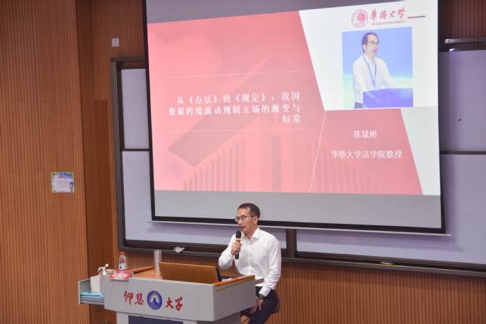 11月12日下午,pg娱乐电子游戏官网入口讲堂第六十八讲在新区和昌楼博雅讲堂顺利举办。本次讲座主题为“从《办法》到《规定》:我国数据跨境流动规制立场的渐变与恒常”,由华侨大学pg娱乐电子游戏官网入口副院长陈斌彬教授主讲,法学院师生到场聆听。