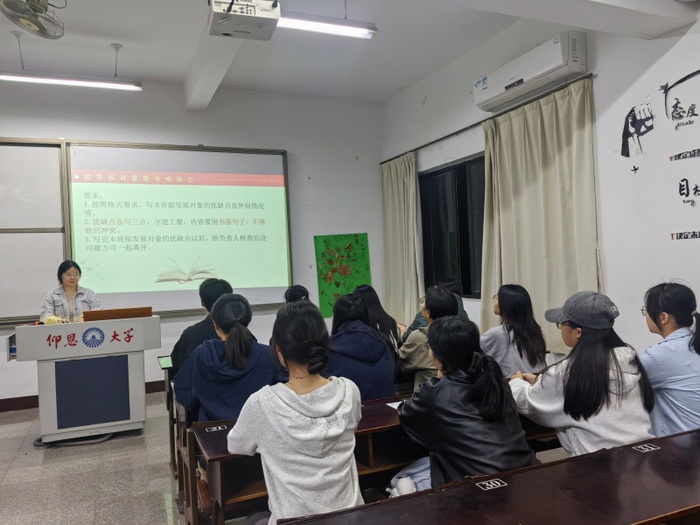10月22日,pg娱乐电子游戏官网入口学生第二党支部于普照楼301教室召开拟发展对象座谈会。会议由学生第二党支部书记吴成爽主持,pg娱乐电子游戏官网入口各班团支书和群众代表参加此次活动。
