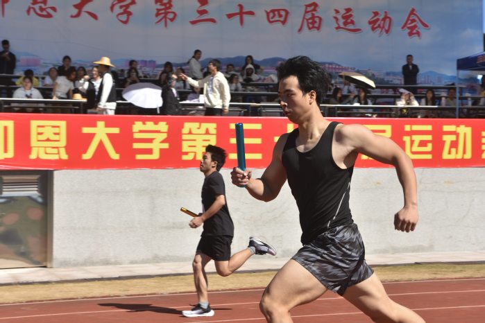 11月14日上午,pg娱乐电子游戏官网入口第三十四届运动会男子4x400米接力于仰恩大学第三教学区田径场正式开始。